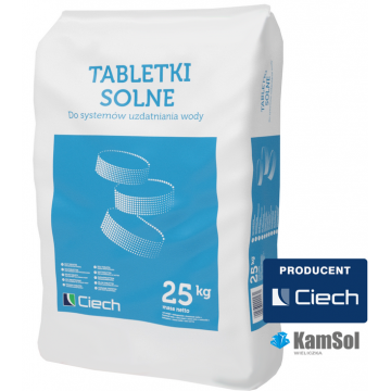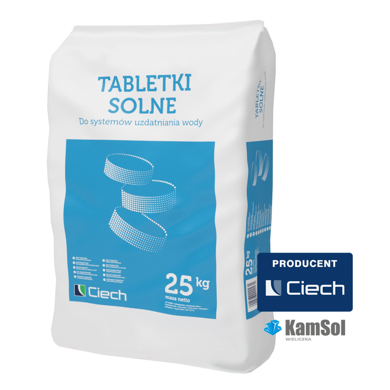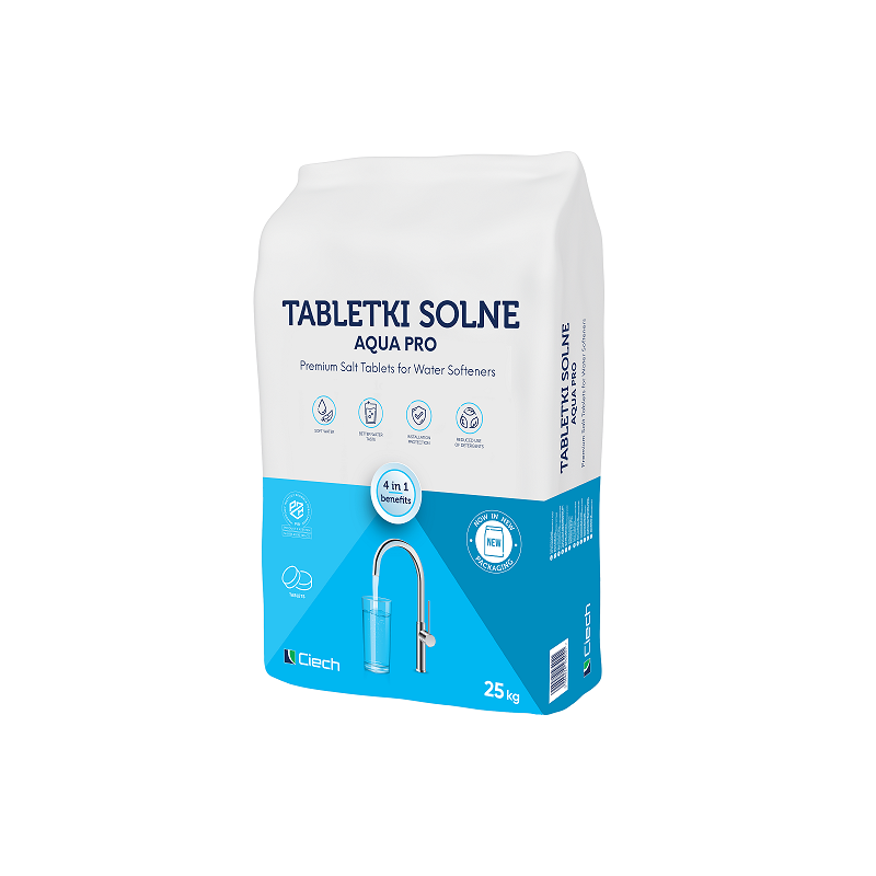 QEMETICA (dawny CIECH) Aqua Pro – tabletki solne 25 kg (sól tabletkowana) do zmiękczaczy i stacji uzdatniania wody ? Oryginalna sól tabletkowana produkowana przez Soda Polska QEMETICA (dawny CIECH S.A.) . Produkt przeznaczony do regeneracji żywic jonowymiennych w zmiękczaczach oraz stacjach uzdatniania wody. ? Oryginalne opakowanie producenta (z logiem Soda Polska QEMETICA – dawny CIECH) potwierdza pochodzenie i zapewnia powtarzalną jakość, która przekłada się na stabilną pracę urządzeń. ▶ Skład i jakość ✅ Tabletki Aqua Pro powstają z wyselekcjonowanej soli warzonej (chlorek sodu – NaCl). Nie posiadają zanieczyszczeń mechanicznych, są bezwonne i wspierają uzyskanie bardzo dobrych parametrów wody użytkowej. Po zastosowaniu soli tabletkowej w zmiękczaczu woda jest gotowa do codziennego użycia. ▶ Zastosowanie tabletek solnych Aqua Pro Sól tabletkowana 25 kg wykorzystywana jest do: • procesów zmiękczania wody • procesów uzdatniania wody • określonych zmywarek domowych i przemysłowych • myjni samochodowych • innych procesów wymagających tabletek solnych do prawidłowej pracy ▶ Najważniejsze zalety ✔ zgodność z najbardziej restrykcyjnymi wymaganiami producentów stacji uzdatniania wody ✔ brak zanieczyszczeń mechanicznych mogących narazić zmiękczacz na uszkodzenia ✔ ograniczenie powstawania złogów solnych wpływających na żywotność i skuteczność urządzeń ✔ stała, powtarzalna jakość – proces produkcji podlega monitoringowi i kontroli ✔ atest producenta – skład zgodny z parametrami na opakowaniu ✔ atest PZH ▶ Parametry tabletki ? średnica tabletki: 25 mm ⚠️ Uwaga: do wykorzystania tabletek solnych wymagane są odpowiednie urządzenia, tzw. stacje uzdatniania wody / zmiękczacze. ? Zachęcamy do prostego testu: rozpuść w szklance wody oryginalną tabletkę Aqua Pro oraz tabletki innych marek. Różnice w rozpuszczaniu i czystości roztworu pokażą, dlaczego produkt QEMETICA (dawny CIECH) jest jednym z najlepszych na rynku. ? Towar dostępny również w zestawach promocyjnych: 250 kg (10 worków) oraz 1000 kg (1 tona / 40 worków) .