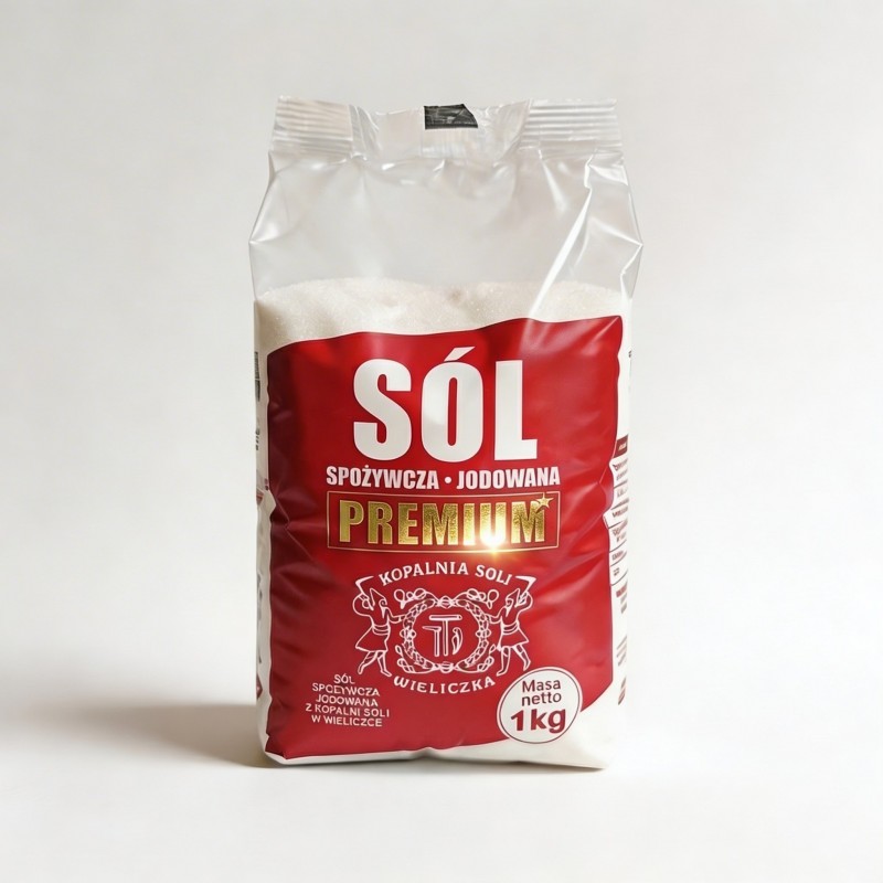 Sól Wielicka Premium jodowana 1 kg to wysokiej jakości sól kuchenna warzona przeznaczona do codziennego stosowania w gospodarstwie domowym. Produkt powstaje z naturalnej solanki pochodzącej z Kopalni Soli w Wieliczce , miejsca o wielowiekowej tradycji pozyskiwania soli o wysokiej czystości i sprawdzonym pochodzeniu. Dzięki kontrolowanemu procesowi produkcji sól zachowuje stabilne parametry, wysoką jakość oraz właściwości cenione w codziennej kuchni. Proces warzenia pozwala uzyskać sól o bardzo jednolitej strukturze i wysokiej czystości chemicznej. Zawartość chlorku sodu NaCl wynosi 99,9% , co oznacza minimalną ilość zanieczyszczeń oraz powtarzalną jakość produktu. Dzięki temu sól doskonale sprawdza się jako sól kuchenna do codziennego gotowania, przyprawiania potraw oraz przygotowywania domowych przetworów. Produkt został jodowany jodkiem potasu , czyli formą jodu powszechnie stosowaną w soli spożywczej. Jodowana sól kuchenna stanowi ważny element codziennej diety, dlatego jest najczęściej wybieranym rodzajem soli do przygotowywania posiłków. Zastosowanie jodku potasu zapewnia stabilne właściwości produktu i odpowiada wymaganiom współczesnych standardów żywieniowych. Dzięki odpowiednio dobranej technologii produkcji sól posiada dobrą sypkość oraz stabilną strukturę, co ułatwia jej dozowanie i przechowywanie. Sól kuchenna Wielicka Premium sprawdza się zarówno w codziennym gotowaniu, jak i podczas przygotowywania przetworów, marynat oraz tradycyjnych potraw. Połączenie naturalnej solanki z Kopalni Soli w Wieliczce, wysokiej czystości NaCl oraz jodowania jodkiem potasu sprawia, że jest to sól kuchenna wysokiej jakości , odpowiednia do codziennego stosowania w nowoczesnej kuchni. Wygodne opakowanie 1 kg jest praktyczne w użyciu i idealnie nadaje się do gospodarstwa domowego. To dobry wybór dla osób, które szukają soli o sprawdzonym pochodzeniu i stabilnych parametrach jakościowych. Najważniejsze cechy produktu: • sól kuchenna warzona z solanki z Kopalni Soli w Wieliczce • zawartość NaCl 99,9% • sól jodowana jodkiem potasu • wysoka czystość chemiczna • dobra sypkość i stabilna struktura • idealna sól kuchenna do codziennego gotowania • opakowanie 1 kg