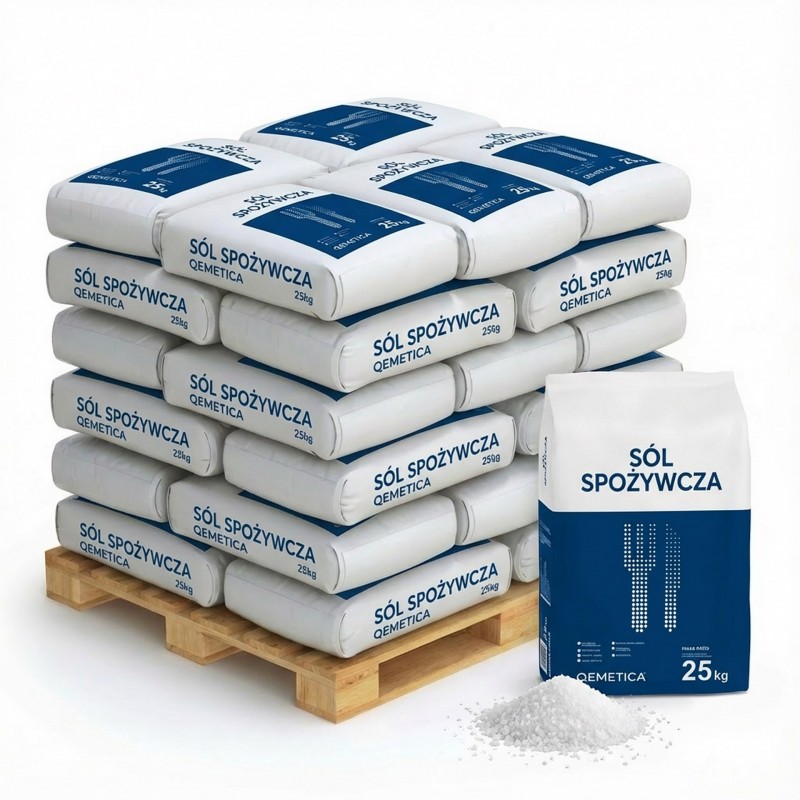 ? Sól warzona sucha spożywcza QEMETICA (dawny CIECH ) – 1000 KG (1 TONA) – 40 worków × 25 kg ?? Produkt polski – oryginalna sól spożywcza producenta QEMETICA (dawny CIECH). Sól warzona sucha spożywcza QEMETICA to wysokiej jakości sól niejodowana, przeznaczona do profesjonalnych zastosowań w przemyśle spożywczym. Produkt powstaje w procesie warzenia i oczyszczania soli kamiennej, co zapewnia stabilne i powtarzalne parametry użytkowe. ⚗️ Jednorodna struktura i neutralny smak sprawiają, że sól doskonale sprawdza się jako surowiec technologiczny w produkcji żywności oraz dalszym przetwórstwie. ? Zastosowanie soli warzonej QEMETICA: ✔ przemysł spożywczy i przetwórstwo ✔ kiszenie warzyw i produkcja przetworów ✔ piekarnie i cukiernie ✔ przemysł mleczarski, mięsny i rybny ? Towar pakowany na palecie – 40 worków po 25 kg (łącznie 1000 kg). Oryginalne worki producenta zapewniają identyfikowalność partii i stałą jakość dostaw.